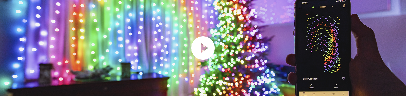 Ответ прост: «Мгновенная настройка, загрузка всегда новых эффектов и анимации, удобное управление с помощью смартфона, нестандартная палитра цветов и быстрое переключение между устройствами, если вы хотите украсить гигантское дерево, дорожку или фасады».